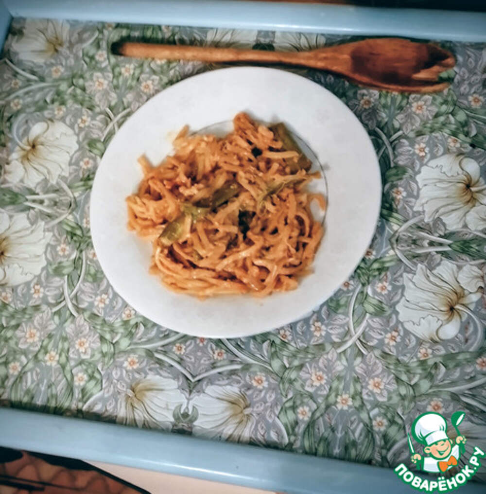 Лапша с крабом и спаржей