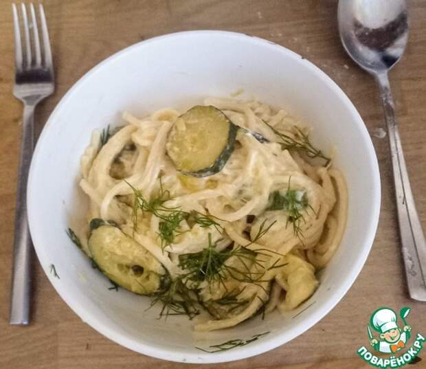 Летнее незатейливое блюдо из. цуккини, чеснока и лайма, по консистенции напоминающее масло. В данном случае я использовала его как соус для спагетти, но возможны варианты. Вы можете подавать его как салат с салатными листьями, или просто с чиабаттой или любым другим хлебом.